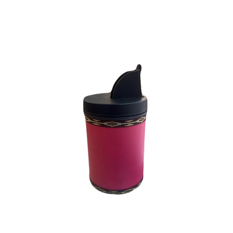 Porta erva redondo em PVC revestido em corino na cor Rosa com faixas decorativas em tecido