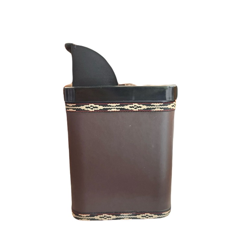 Porta erva quadrado em PVC revestido em corino na cor marrom com faixas decorativas em tecido